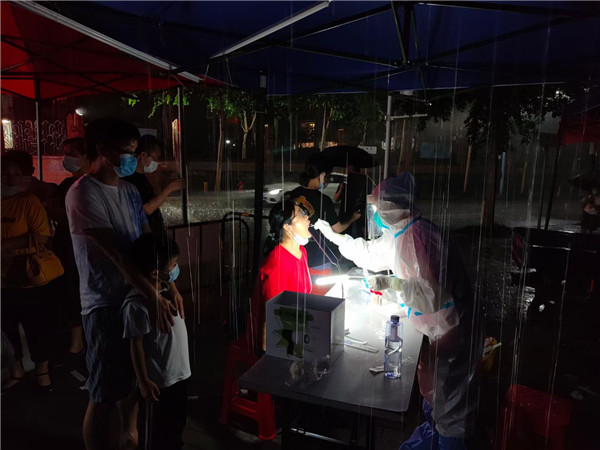 6月22日一早,深圳雷雨交加,深圳市氣象臺2021年06月22日07時10分在多個區(qū)域發(fā)布暴雨紅色預警,羅湖也包括其中。有那么一群人,嚴陣以待、逆雨迎風,堅守在抗疫一線,當天,記者來到各核酸檢測點,醫(yī)護人員和社區(qū)義工們仍然冒著風雨,堅守在核酸采集的崗位上。