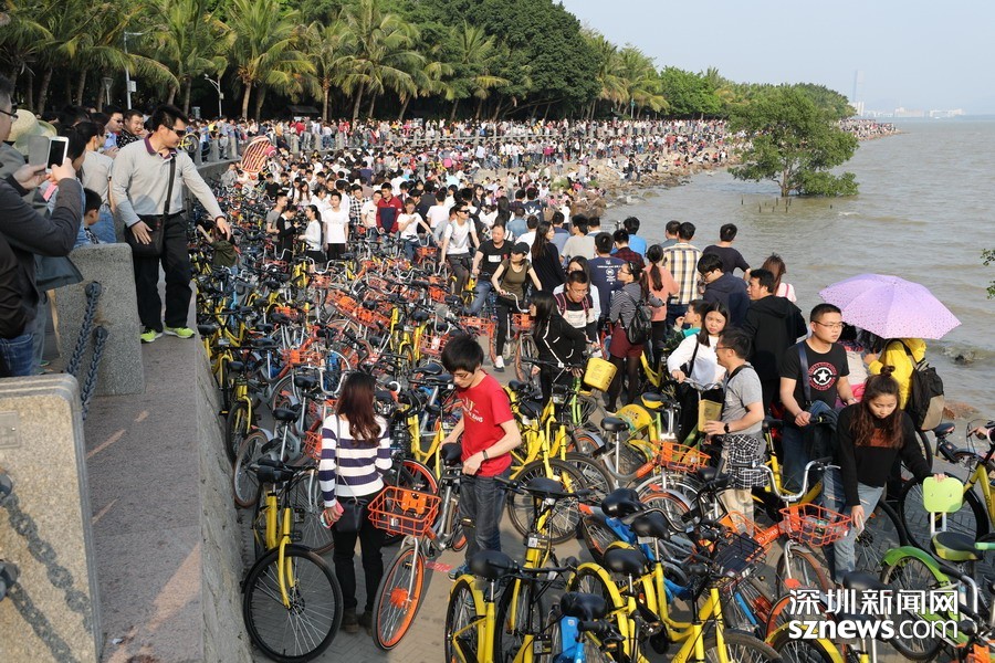 深圳人假日勤動腳,深圳灣公園被自行車堵了?