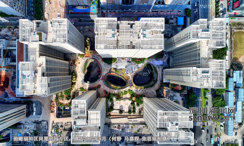 告別“握手樓”、“一線天”、臟亂差,崗廈河園片區(qū)改造后,建筑錯落有致,建成后將成為深圳最具標(biāo)志性的城市綜合體之一。