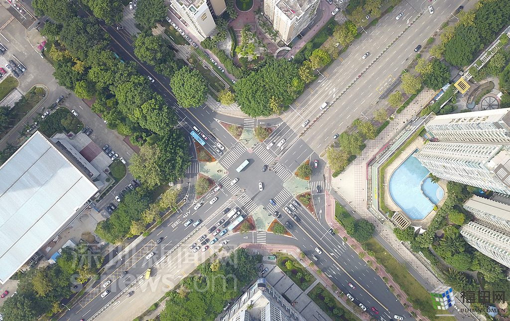 在低空中視野下,路口的交通情況清晰可見(jiàn)。?