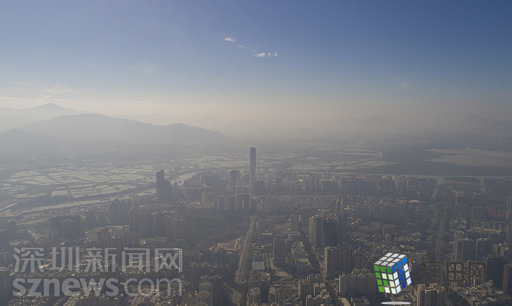 1月18日上午,記者操控無人機俯瞰深圳中心區(qū)發(fā)現,灰霾將天空“割裂”成一道涇渭分明的界線,把城市籠罩得如同一個充滿霧靄的森林。從平安金融大廈的上空遠眺,西南面的深圳灣在灰霾的籠罩下變成了一片“沙漠”,東面的京基一百幾乎被灰霾“吞沒”,北邊平時肉眼可看的梅林山也因為能見度較低變得若隱若現,南面的米埔濕地也被云遮霧繞。