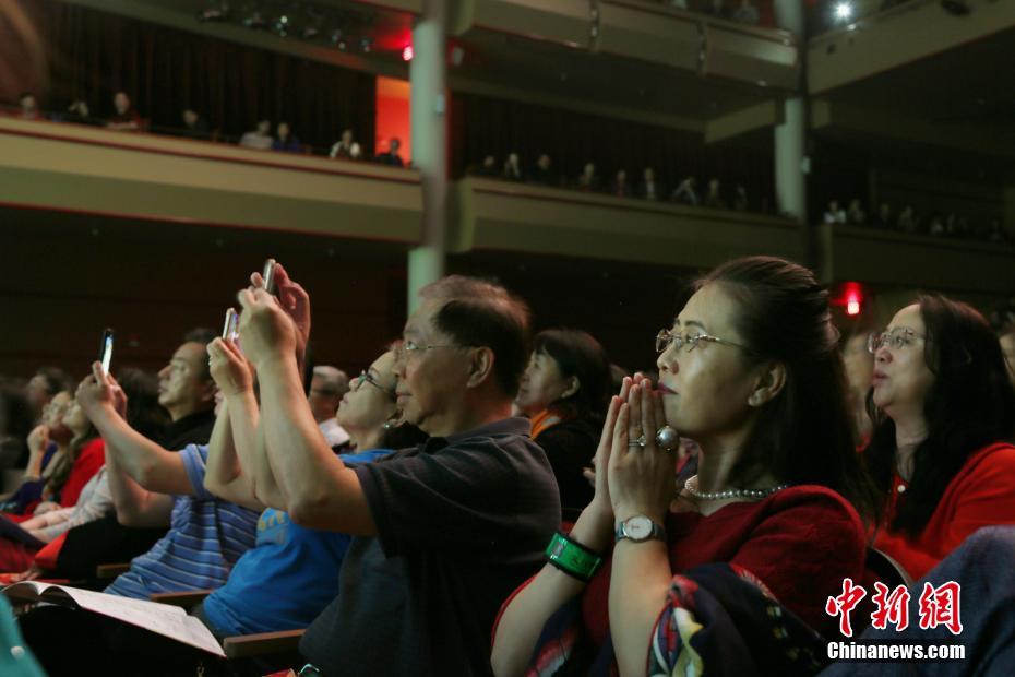 當?shù)貢r間2月25日晚,2018年“文化中國·四海同春”藝術團在美國南部城市休斯敦舉行慰僑綜藝晚會。休斯敦是2018年“文化中國·四海同春”藝術團赴美演出的首站,獲得休斯敦華人華僑的熱情回應。其后,該藝術團還將奔赴美國奧蘭多、舊金山、芝加哥演出。圖為休斯敦華人華僑觀眾認真欣賞藝術團演員們的演出,不時拿出手機拍攝。中新社記者曾靜寧 攝