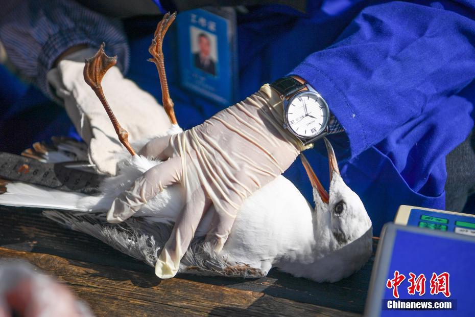 工作人員介紹,環(huán)志的目的在于了解紅嘴鷗種群數(shù)量變化情況及身體狀況,更好地為候鳥遷徙研究和野生動物疫源疫病監(jiān)測工作服務(wù)。中新社記者劉冉陽 攝