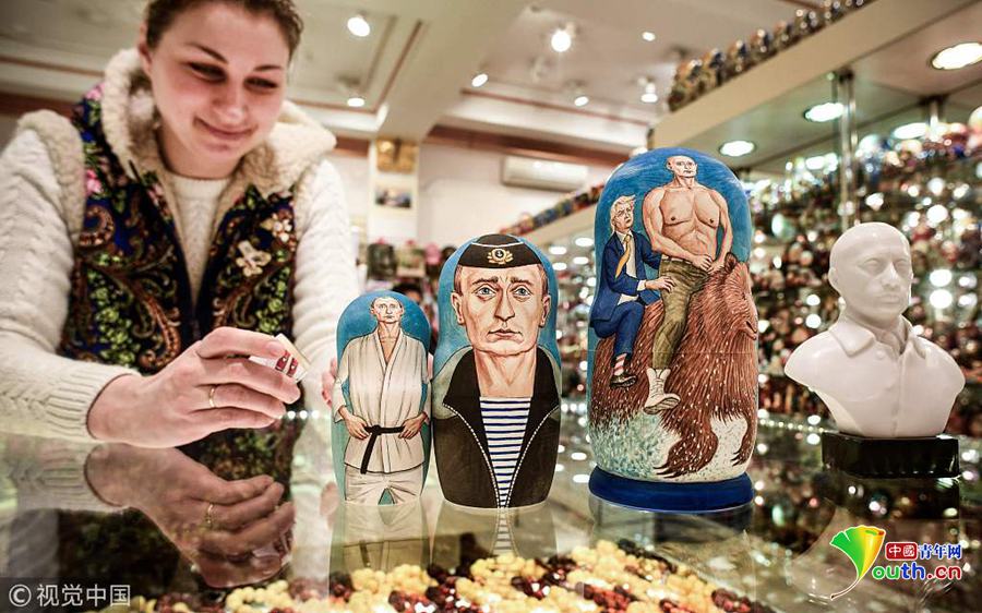當(dāng)?shù)貢r(shí)間2018年3月13日,俄羅斯莫斯科,俄羅斯大選將于3月18日舉行,大選主題紀(jì)念品熱賣。