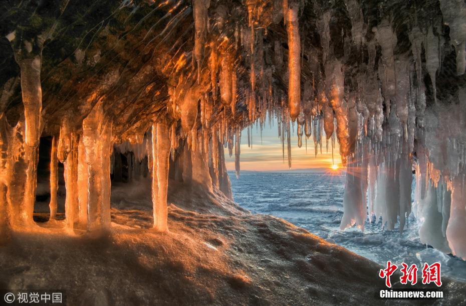 俄羅斯貝加爾湖冰洞萬千冰錐氣勢(shì)迫人
