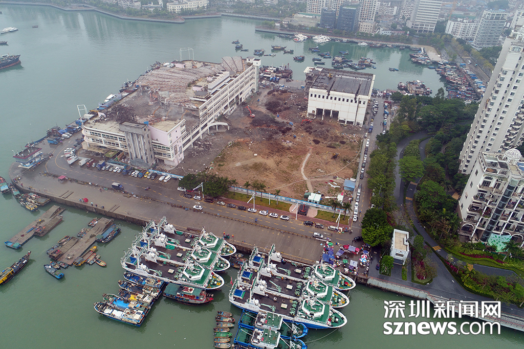 從高空俯瞰,漁人碼頭水產(chǎn)交易市場(chǎng)和制冰廠房屋的房屋拆除速度非常快,不少拆除機(jī)器正在工作