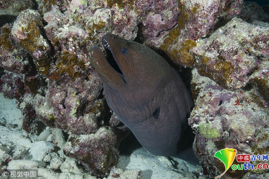 印度洋馬爾代夫水域,爪哇裸胸鱔。