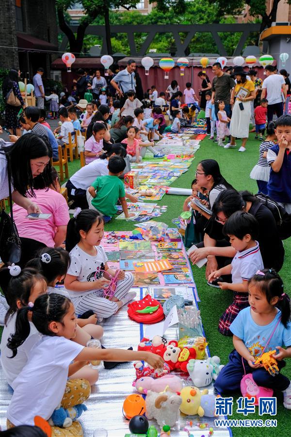 6月4日,孩子和家長(zhǎng)們?cè)谛@“跳蚤市場(chǎng)”中買賣玩具和書籍。新華社記者 徐昱 攝