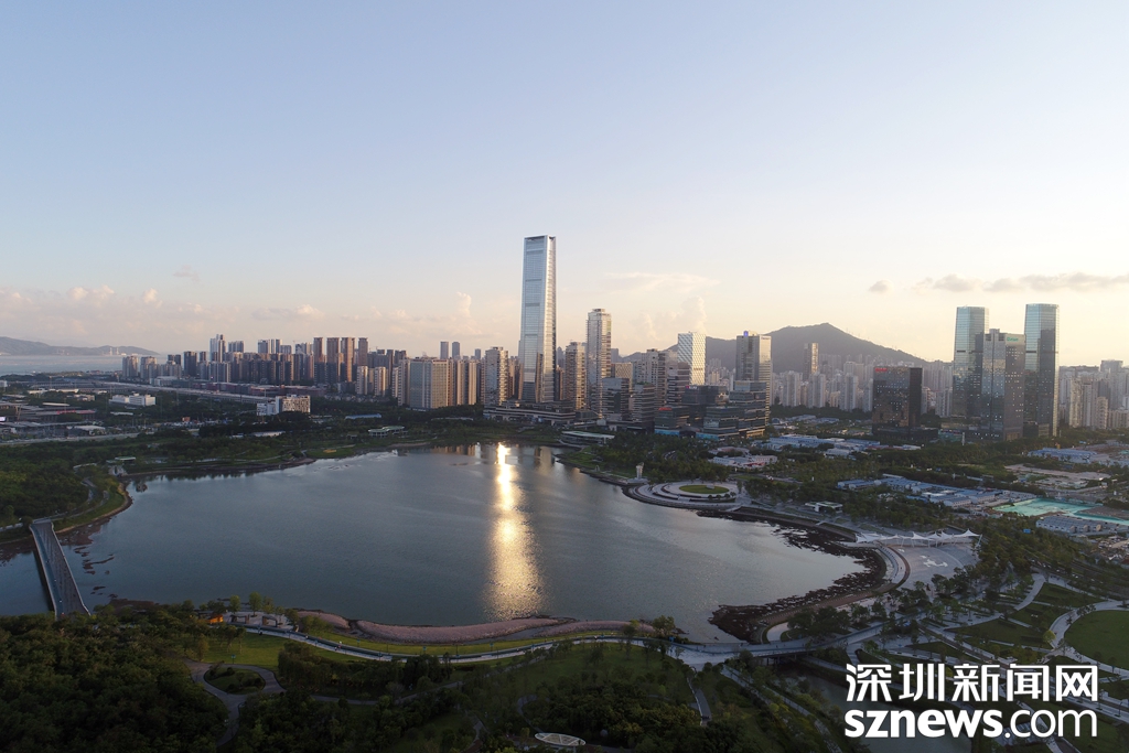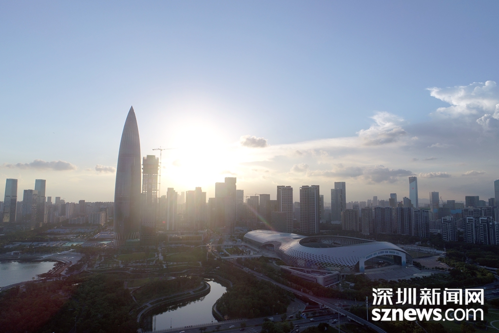 夕陽(yáng)為深圳灣體育館和華潤(rùn)大廈打上柔美的輪廓光