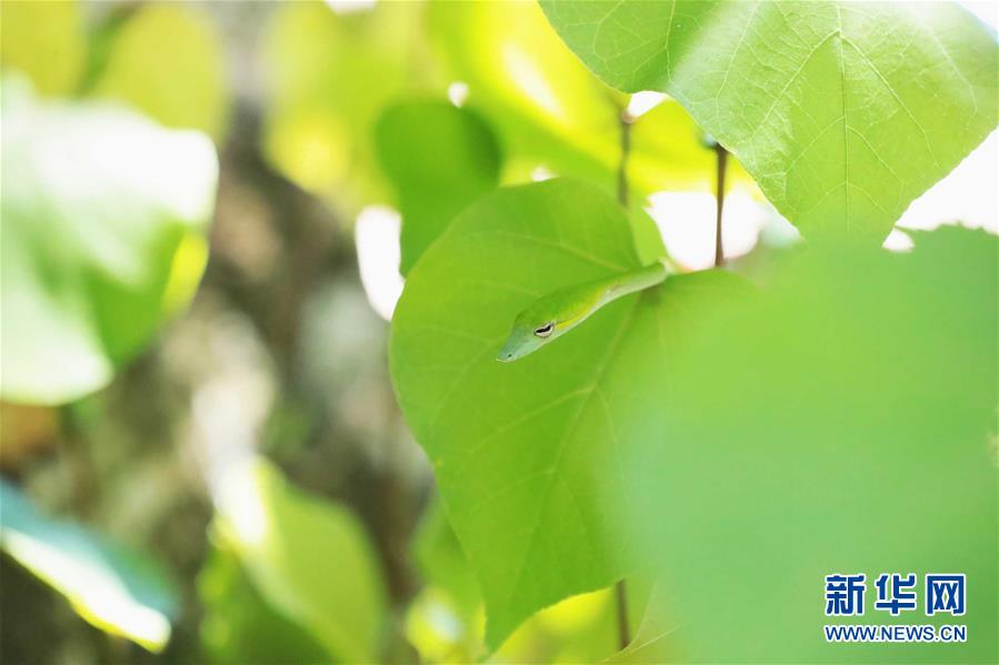 這是7月19日在馬來西亞沙撈越州峇哥國家公園拍攝的綠瘦蛇。設(shè)立于1957年的峇哥國家公園坐落于馬來西亞沙撈越州,擁有豐富的野生動植物物種。新華社記者 朱煒 攝