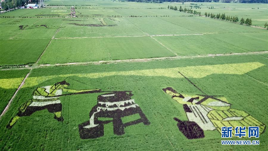 這是7月29日在安徽壽縣安豐塘水庫北堤拍攝的“稻田畫”(無人機拍攝)。 新華社記者 張端 攝