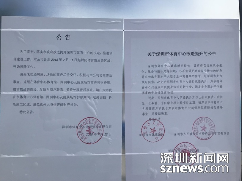 在進入深圳體育場的路上,圍擋張貼了改建公告