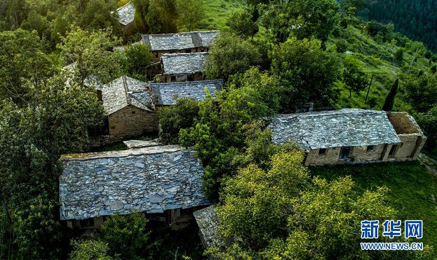 掩映在大山之中的石板房古村落,人去房空(8月7日無人機拍攝)。 新華社記者陶明攝
