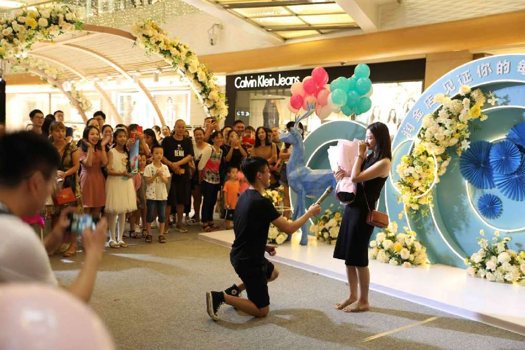 開(kāi)幕式當(dāng)天,潤(rùn)金店工作人員還配合市民楊先生上演了一場(chǎng)浪漫的“求婚大作戰(zhàn)”。原來(lái),數(shù)日前,楊先生到潤(rùn)金店表示要買(mǎi)一枚與眾不同的戒指向女友求婚。在銷售顧問(wèn)的建議下,楊先生選購(gòu)了一枚藍(lán)寶石戒指作為求婚信物。得知楊先生的心意后,潤(rùn)金店品牌策劃部決定與楊先一起在七夕當(dāng)天完成這場(chǎng)浪漫的“求婚大作戰(zhàn)”。當(dāng)天,楊先生帶著毫不知情的女友來(lái)到潤(rùn)金店“炫出色彩 耀你不凡”VIP品鑒會(huì)現(xiàn)場(chǎng)。正當(dāng)女友全神貫注欣賞小提琴、拉丁舞等開(kāi)幕式表演節(jié)目時(shí),楊先生從兜里掏出事先準(zhǔn)備好的藍(lán)寶石戒指,單膝跪地向一臉茫然的女友喊:“嫁給我吧?!贝藭r(shí),開(kāi)幕式現(xiàn)場(chǎng)背景音樂(lè)“配合”地?fù)Q成了甜蜜的《今天你要嫁給我》。感動(dòng)得熱淚盈眶的女友在圍觀市民的歡呼中,拉起了楊先生,并答應(yīng)了他的求婚。圍觀市民表示“七夕不過(guò)是路過(guò),卻不料狠狠地吃了一把狗糧?!?/p>