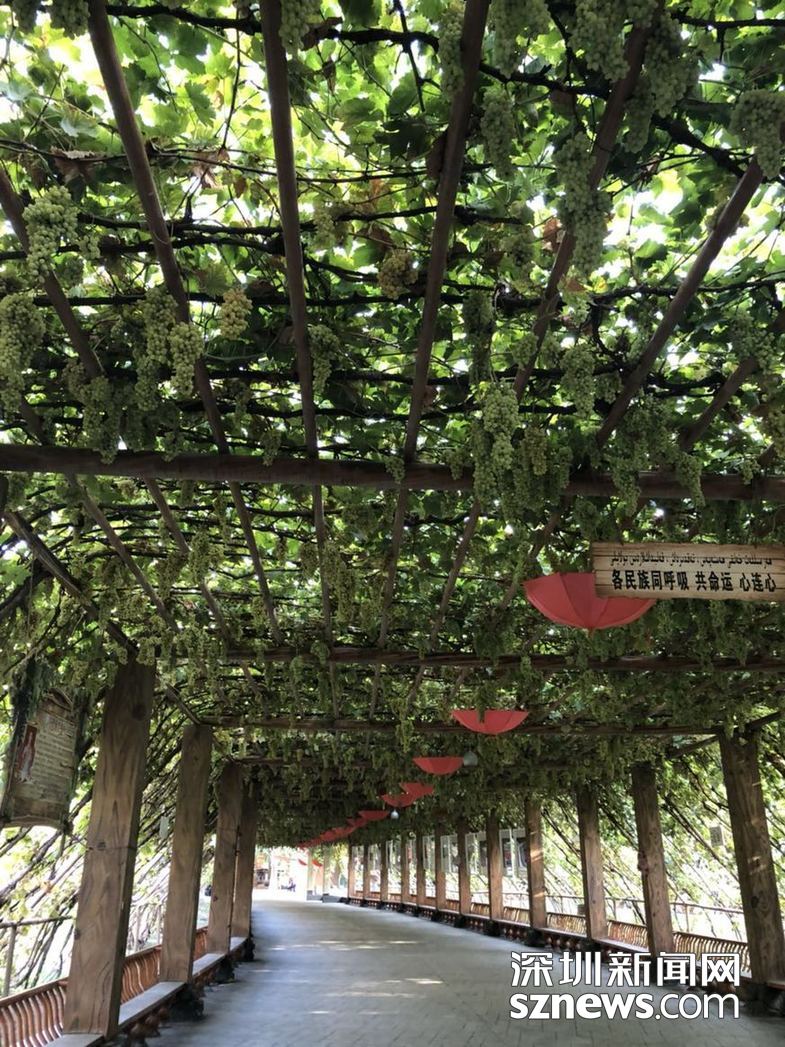 ??? ?深圳新聞網(wǎng)訊? 說起吐魯番的葡萄溝,當(dāng)然是因?yàn)槠咸炎钬?fù)盛名。新疆民謠說:“吐魯番的葡萄哈密的瓜,庫(kù)爾勒的香梨人人夸,葉城的石榴頂呱呱。”道出了新疆有名的四個(gè)水果之鄉(xiāng),吐魯番獨(dú)居榜首。這里的葡萄可是馳名中外,享有盛譽(yù)!?