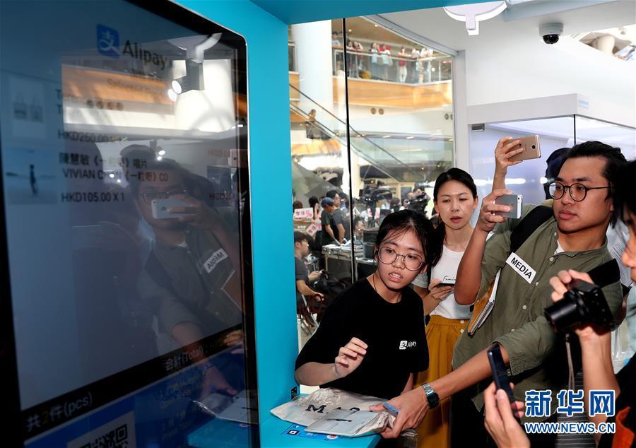 9月5日,媒體記者在無(wú)人零售商店體驗(yàn)付款環(huán)節(jié)。當(dāng)日,香港首家AlipayHK(支付寶香港版)無(wú)人零售商店在九龍區(qū)奧海城開業(yè)。商店占地約370平方米,售賣多款時(shí)尚精品、服飾等,還引入一臺(tái)智能機(jī)械臂,為顧客現(xiàn)場(chǎng)沖調(diào)香濃咖啡。新華社記者李鋼攝