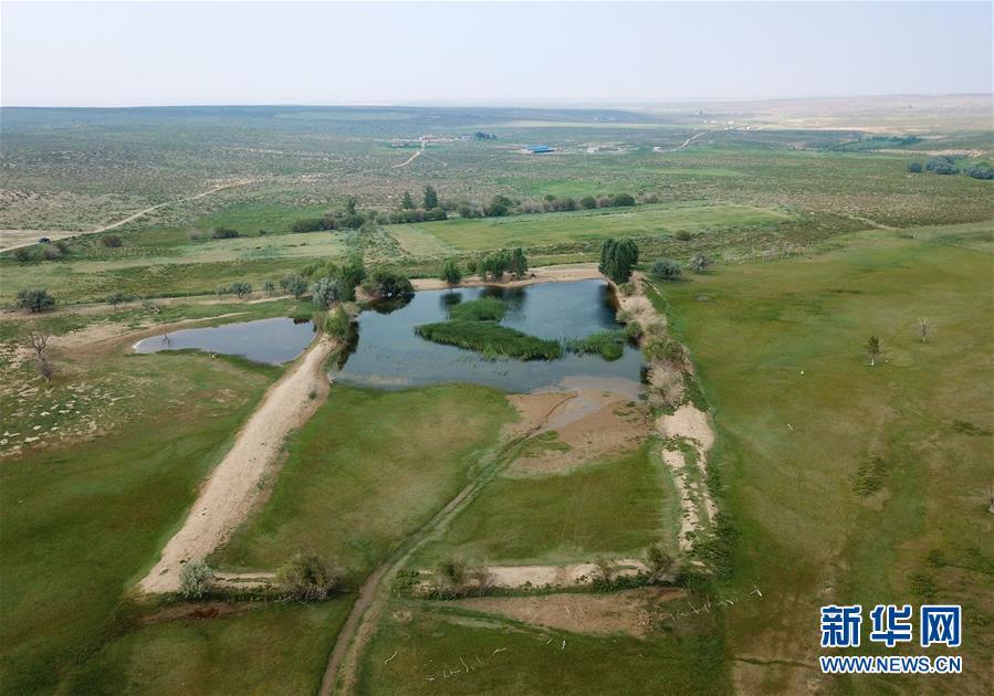 內(nèi)蒙古杭錦旗沙日召嘎查牧民白音道爾計治理過的庫布其沙漠(7月31日無人機拍攝)。 新華社記者邢廣利攝