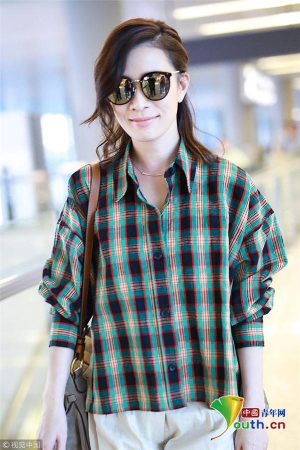 2018年9月9日,“嫻妃”佘詩(shī)曼從上海機(jī)場(chǎng)飛往北京機(jī)場(chǎng),她擺“剪刀腿”大方任拍,身穿格紋襯搭配衫燈籠褲,時(shí)髦青春衣品超贊!