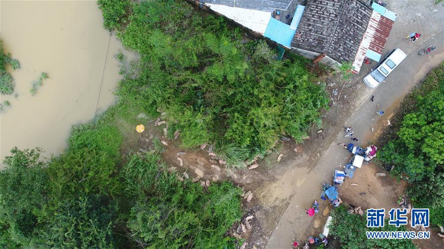 9月18日,在廣東省陽江市陽春市,村民將家畜轉(zhuǎn)移到高處(無人機(jī)拍攝)。 新華社記者張加揚(yáng)攝