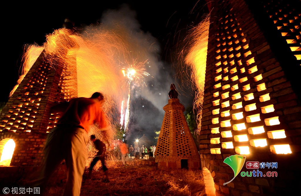 江西省進賢縣西湖李村燒圣塔喜迎中秋節(jié)。燒圣塔是當?shù)貜墓胖两裱永m(xù)下來的中秋習俗。