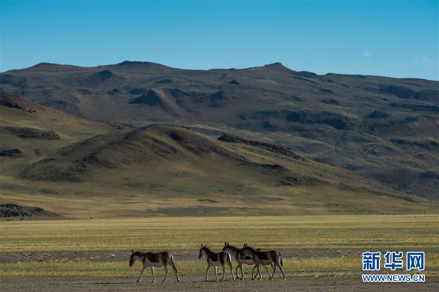 在西藏阿里地區(qū)境內(nèi)拍攝的藏野驢(9月8日攝)。 阿里地處西藏西部,平均海拔4500米以上,面積30多萬平方公里,羌塘國家級(jí)自然保護(hù)區(qū)幾乎涵蓋整個(gè)阿里地區(qū),是眾多野生動(dòng)物生活的樂園。 新華社記者 普布扎西 攝
