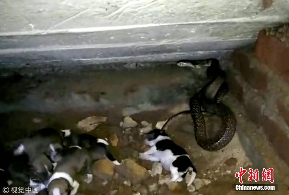 9月20日訊(具體拍攝時(shí)間不詳),印度奧里薩邦,一只寵物狗勇敢地挽救了新生幼犬的生命,它擊退了一條可怕的眼鏡蛇。面對(duì)一條巨大的斑點(diǎn)眼鏡蛇——世界上最毒的蛇之一——這位新媽媽勇敢保護(hù)僅出生兩天的幼崽。但不幸的是,盡管狗狗盡了最大的努力,蛇還是在救援人員救出幼犬之前仍殺死了4只小狗。圖片來源:視覺中國