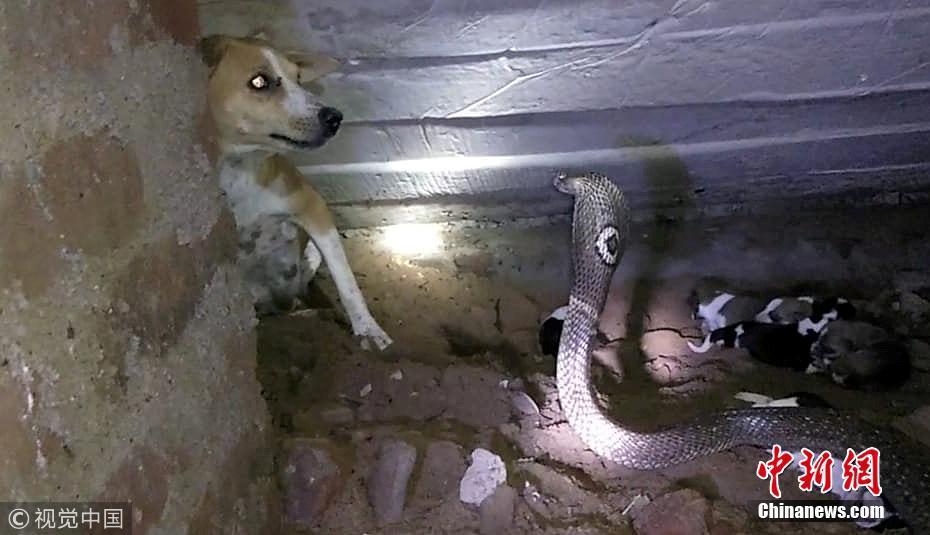 9月20日訊(具體拍攝時間不詳),印度奧里薩邦,一只寵物狗勇敢地挽救了新生幼犬的生命,它擊退了一條可怕的眼鏡蛇。面對一條巨大的斑點眼鏡蛇——世界上最毒的蛇之一——這位新媽媽勇敢保護(hù)僅出生兩天的幼崽。但不幸的是,盡管狗狗盡了最大的努力,蛇還是在救援人員救出幼犬之前仍殺死了4只小狗。圖片來源:視覺中國