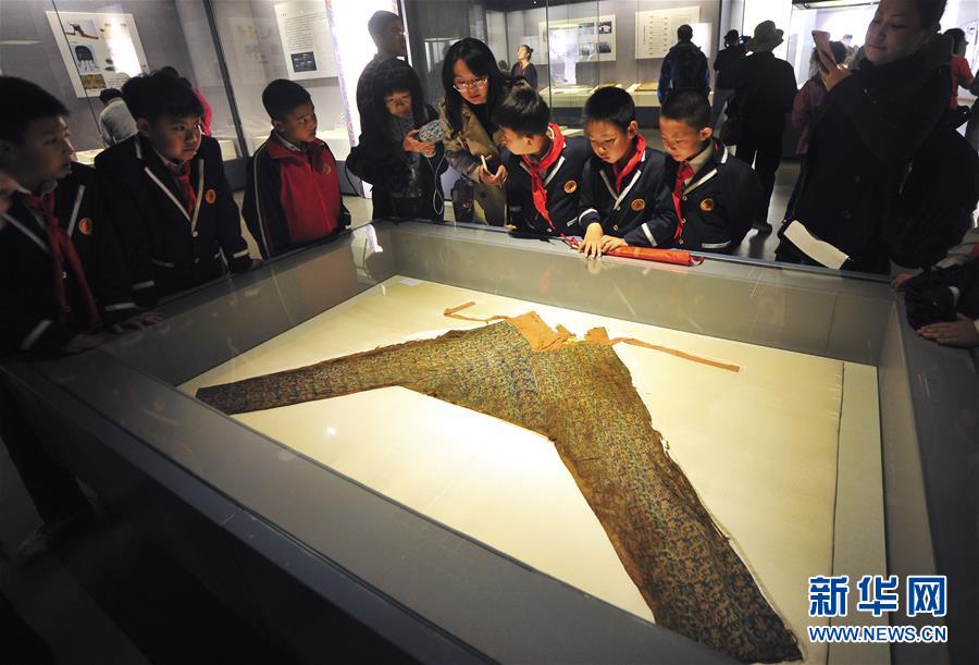 9月24日,在位于烏魯木齊的新疆博物館,參觀者在“尼雅·考古·故事——中日尼雅考古30周年成果展”上觀看“長(zhǎng)樂大明光”錦女褲。此次展覽從9月22日持續(xù)到2019年1月。 新華社記者 王菲 攝