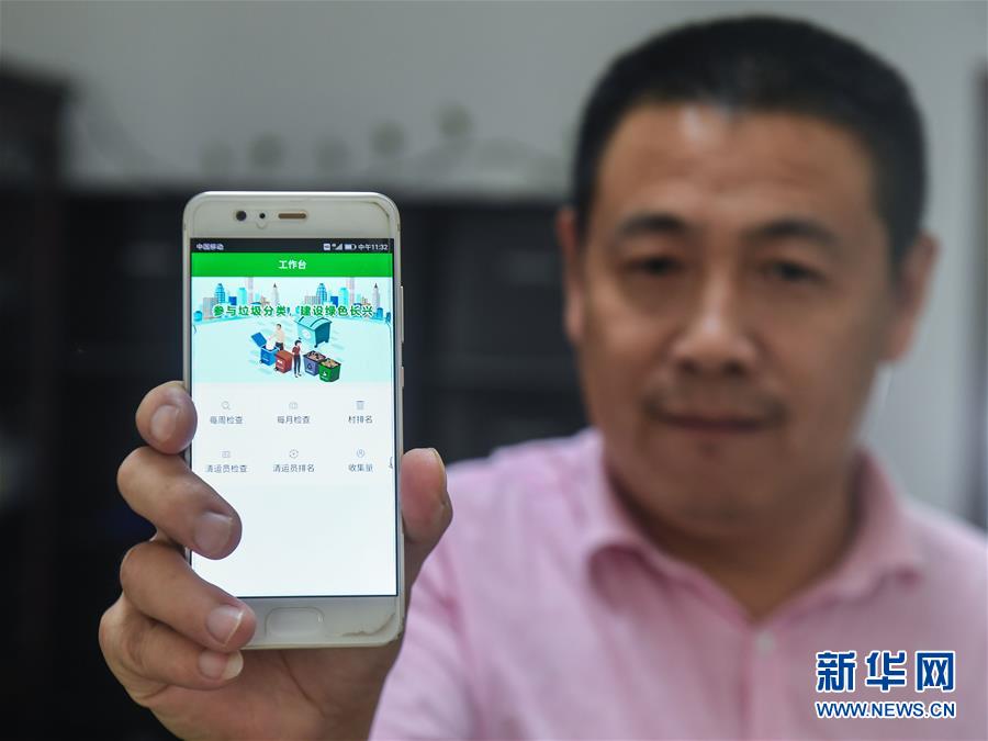 9月27日,工作人員展示垃圾分類APP的界面。從9月初開始,浙江省長興縣小浦鎮(zhèn)推廣使用手機(jī)垃圾分類智能管理平臺。通過這款A(yù)PP可以進(jìn)行村民垃圾分類情況打分、清運員每日簽到、監(jiān)督員巡查等,并能即時生成農(nóng)戶垃圾分類“成績單”,所有農(nóng)戶均可通過APP查詢垃圾分類排行榜,既方便又環(huán)保。新華社記者 徐昱 攝