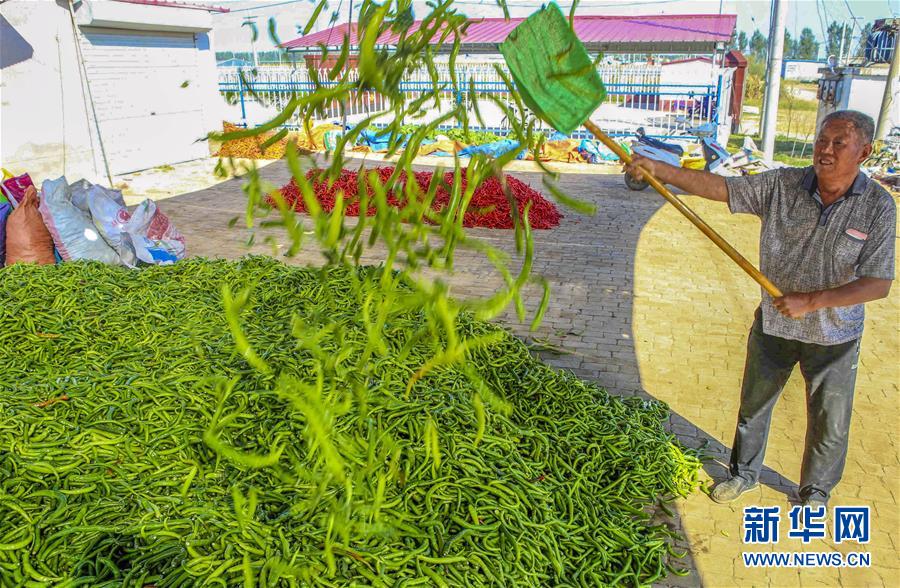 9月28日,饒陽縣留楚鄉(xiāng)影林村的種植戶在翻晾辣椒。 近年來,河北省饒陽縣結合市場需求,積極引進特色品種辣椒種植,開辟出一條農民增收致富新路。目前,該縣特色辣椒種植面積1000余畝,種植戶年均增收3000余元。 新華社記者 李曉果攝