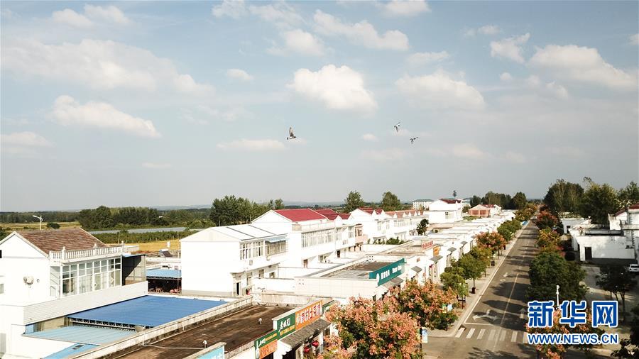這是安徽鳳陽小崗村友誼大道(9月27日無人機拍攝)。 新華社記者 張端攝