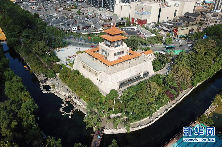 9月30日,游客在免費開放的濟南市黑虎泉游覽(無人機拍攝)。近年來,山東積極推進國有景區(qū)免費開放工作,截至目前,山東實現(xiàn)免費開放的國有景區(qū)已達286處。新華社記者徐速繪攝