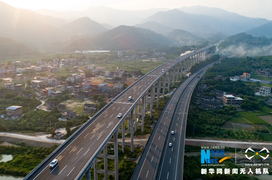 這是改擴(kuò)建工程施工后的廈蓉高速南靖縣和溪路段(無人機(jī)拍攝)。新華網(wǎng) 肖和勇 攝