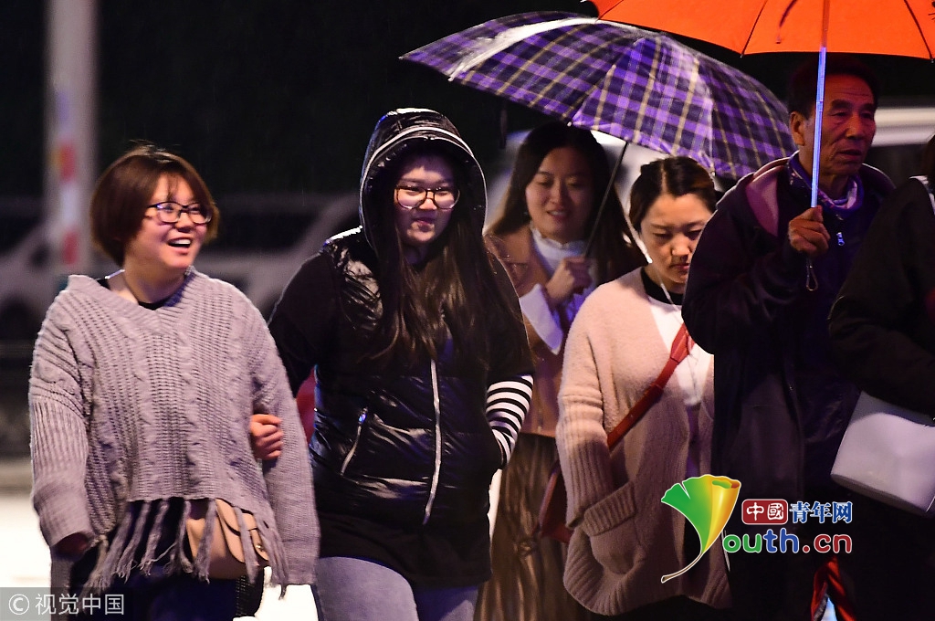 北京冷空氣來(lái)襲 游客紛紛著秋冬裝游覽天安門