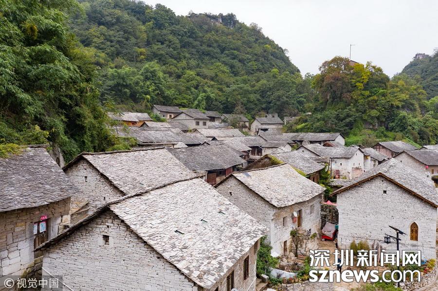 深圳新聞網(wǎng)訊 2018年9月27日,貴州安順,航拍坐落在群山中的鎮(zhèn)寧布依族苗族自治縣高蕩村。鎮(zhèn)寧高蕩村民居為石木結(jié)構(gòu)干欄式石板房,建造時(shí)間五、六十年至數(shù)百年不等,建筑保存基本完好。