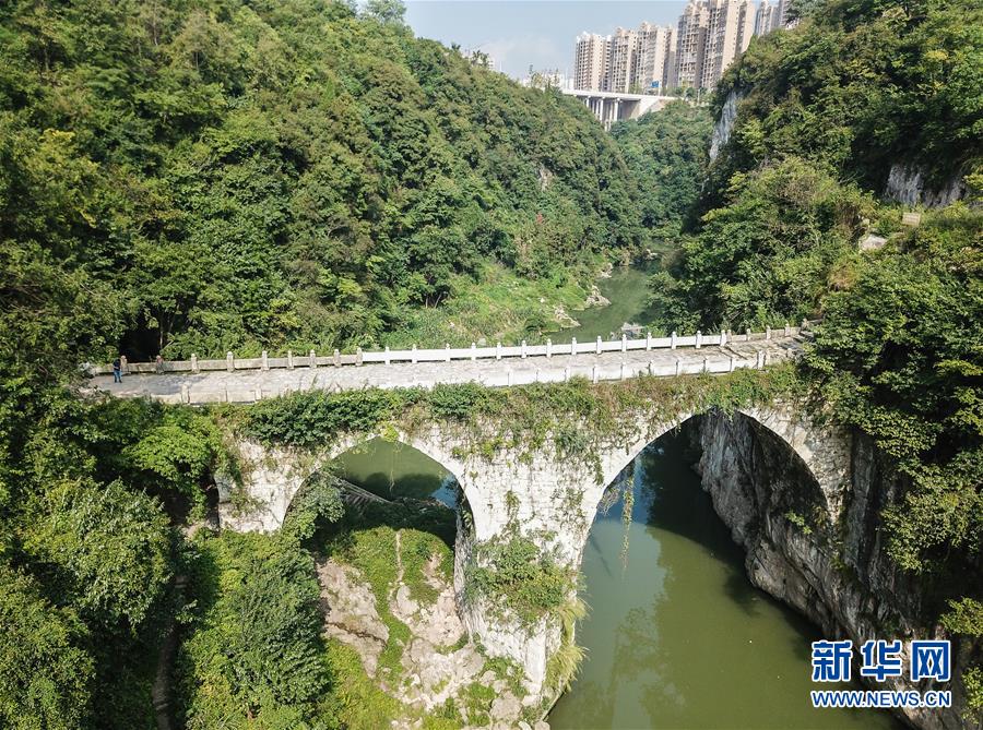 位于貴州省福泉市,修建于明代的葛鏡橋被橋梁專家茅以升譽(yù)為“西南橋梁之冠”(8月21日無(wú)人機(jī)拍攝)。新華社記者陶亮攝