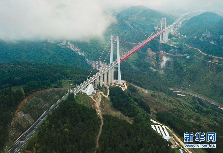 貴陽至甕安高速公路上的清水河大橋(8月27日無人機拍攝)。該橋主跨1130米,是世界上最大單跨板桁結合加勁梁懸索橋。新華社記者劉續(xù)攝