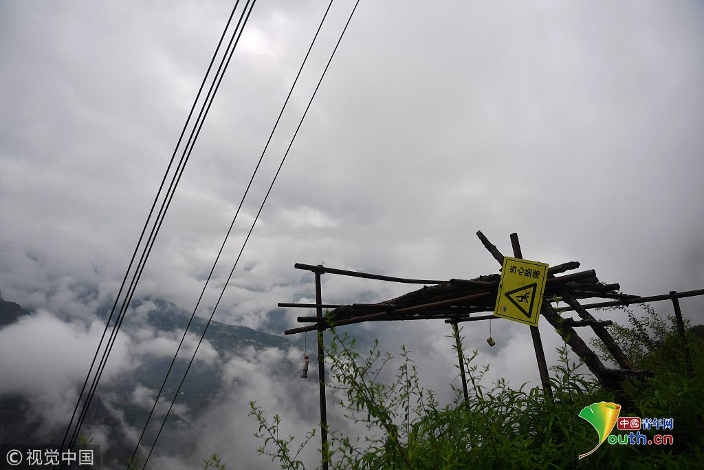 2018年8月3日,四川涼山懸崖村貨運索道。圖片作者:莫曉