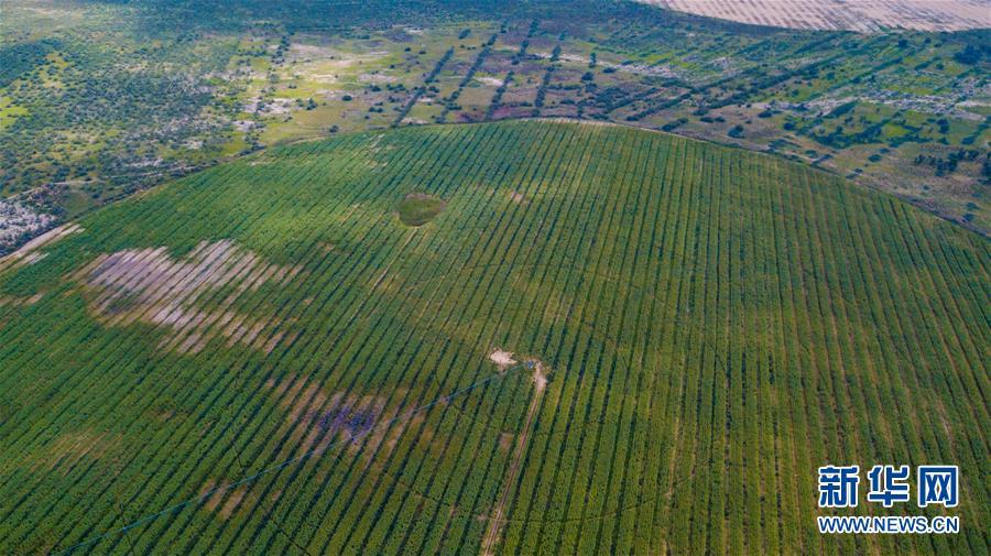 內(nèi)蒙古達(dá)拉特旗白土梁林場(chǎng)的沙棘林(8月1日無人機(jī)拍攝)。 新華社記者張善臣攝