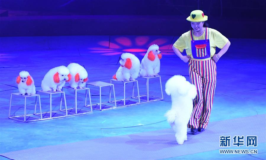 10月16日,馬戲團(tuán)演員在濮陽(yáng)國(guó)際雜技藝術(shù)節(jié)上表演馬戲《小狗當(dāng)家》。
