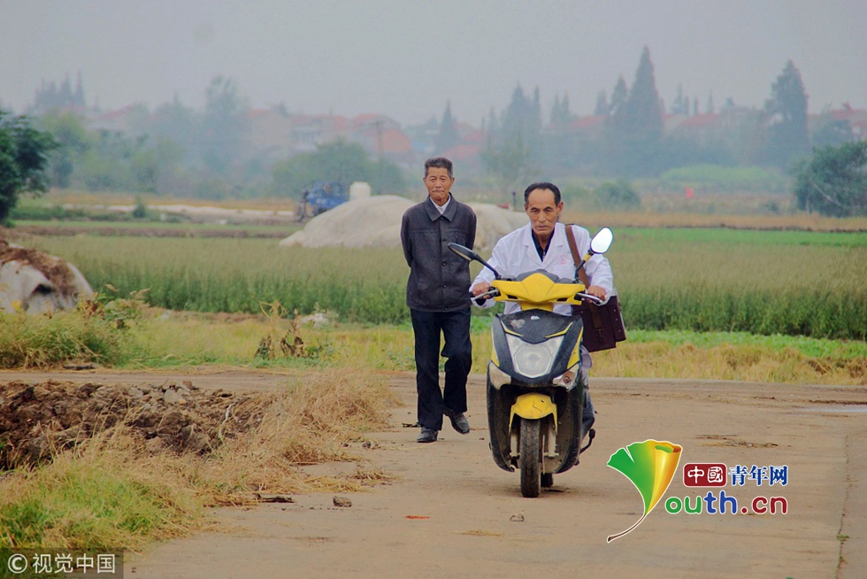 2018年9月26日,湖北孝感,云夢(mèng)縣下辛店鎮(zhèn)白水湖村村醫(yī)陳年祥在村衛(wèi)生室為村民看病治病。對(duì)行動(dòng)不便的病人、老年人,就上門為村民看病問(wèn)診。圖片作者:陳保忠/視覺(jué)中國(guó)