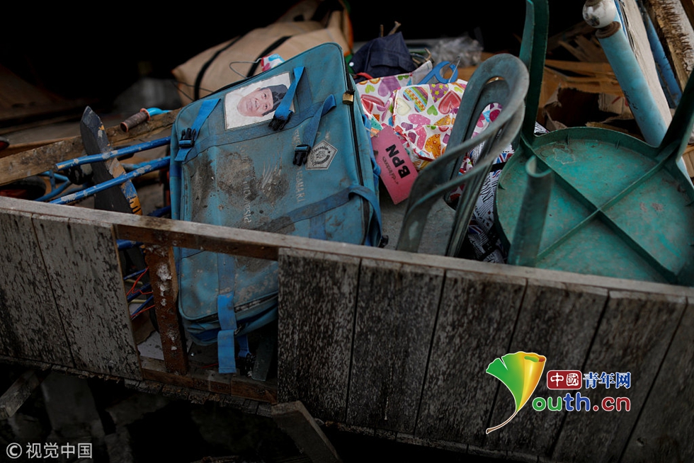 當(dāng)?shù)貢r(shí)間2018年10月11日,印尼帕盧,15歲的Ikhmal Yudanto站在他母親的汽車(chē)上,汽車(chē)在地震中被嚴(yán)重毀壞。