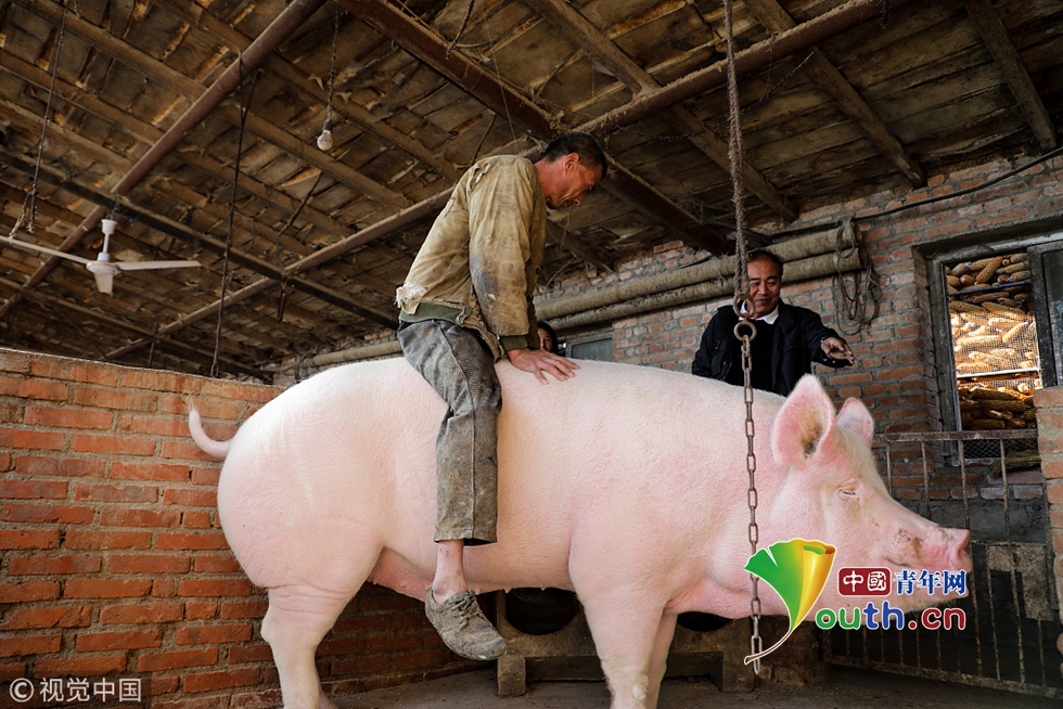 2018年10月16日,遼寧丹東,900斤重的大豬,堪稱豬中巨無(wú)霸,豈不是炙手可熱的網(wǎng)紅一枚?大小老板還不得帶上銀子蜂擁而至?然而,今年不行了,受遼寧多地豬瘟疫情影響,900斤大豬無(wú)人問(wèn)津。本想靠著這頭巨無(wú)霸大豬刷爆朋友圈甚至賣個(gè)大價(jià)錢的養(yǎng)豬人張先生,現(xiàn)在非常擔(dān)心一頭好豬爛在手上。10月16日,遼寧丹東。當(dāng)著來(lái)圍觀的鄉(xiāng)親的面,養(yǎng)豬人張先生小心翼翼地騎上了豬背,希望用這樣的造型求關(guān)注。