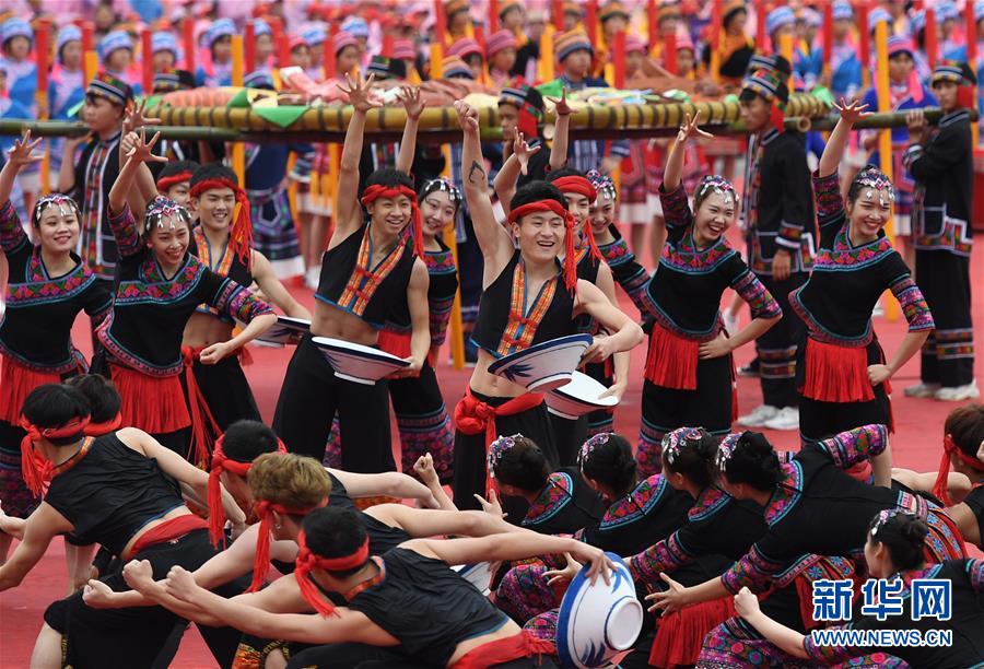 當(dāng)日,廣西大化瑤族自治縣舉行自治縣成立30周年慶祝大會(huì),當(dāng)?shù)馗髯逋d歌載舞慶縣慶。