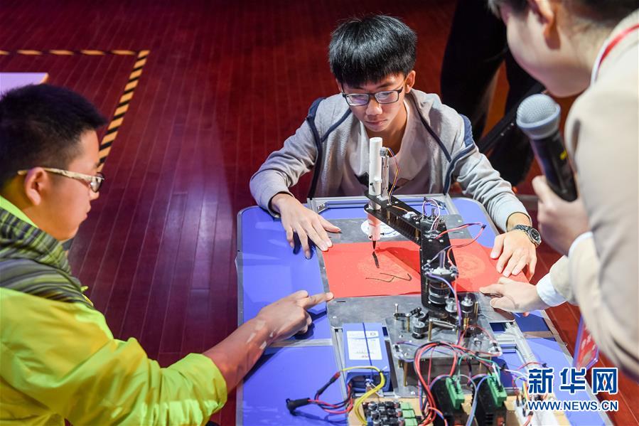 當(dāng)日,中國(guó)科學(xué)技術(shù)大學(xué)第十八屆RoboGame機(jī)器人大賽舉行,該校21支學(xué)生代表隊(duì)帶著他們?cè)O(shè)計(jì)和制作的機(jī)器人參賽。新華社記者張端攝