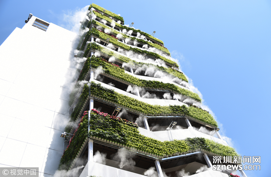 “仙氣飄飄”、“西安天氣有多熱,房子都冒煙了”,這是一段抖音小視頻里網(wǎng)友的評(píng)論留言。視頻中一棟10層高的樓外側(cè)樓梯處掛滿了綠植,同時(shí)綠植上方還有噴霧。藍(lán)藍(lán)的天空當(dāng)做背景,引來不少人上前拍照,配著背景音樂的確讓人感覺清涼無(wú)比。