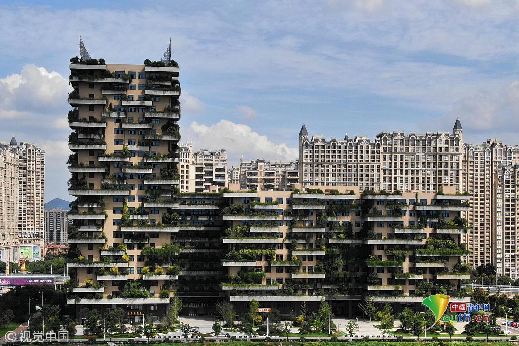 每個樓層都種植著茂盛的植物。