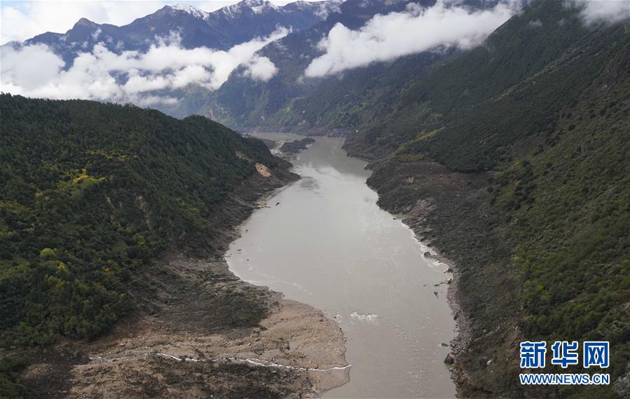 雅魯藏布江上的堰塞湖和堰塞體(10月18日攝)。 新華社記者 覺果攝