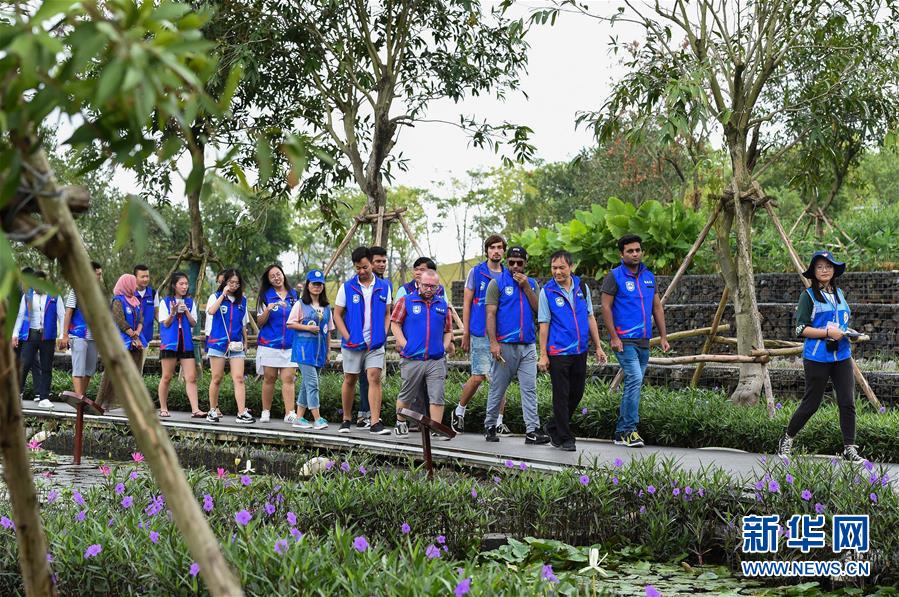 在??谑忻郎岷峪P翔濕地公園,參加濕地保護(hù)志愿服務(wù)講解員培訓(xùn)的留學(xué)生志愿者一邊參觀一邊聽中國(guó)志愿者講解(10月21日攝)。 ??谑续P翔濕地公園內(nèi)流水潺潺,綠草如茵。很難想象,這個(gè)市民游客休閑散步的好去處、具有強(qiáng)大污水凈化功能的濕地公園,兩年前還是臭氣熏天、人們避之不及的垃圾堆填場(chǎng)。 把生態(tài)文明建設(shè)放到更加突出的位置,近兩年來(lái)??谑幸詽竦爻鞘薪ㄔO(shè)為突破口,不斷創(chuàng)新城市生態(tài)治理,著力改善生態(tài)民生,在生態(tài)文明建設(shè)上闖關(guān)探路。 新華社記者 楊冠宇 攝