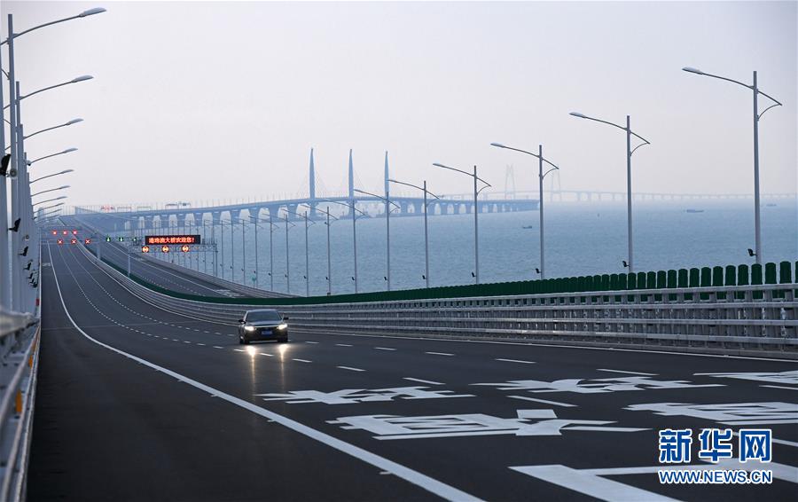 工作車輛行駛在港珠澳大橋上(2018年10月20日攝)。 金秋十月,伶仃洋上海天一色、潮聲陣陣,依傍著這片中國南海水域的城市群迎來深具意義的一天。 10月23日上午,港珠澳大橋開通儀式在廣東珠海舉行,中共中央總書記、國家主席、中央軍委主席習近平出席儀式,宣布大橋正式開通。 碧波之上,一橋飛架香港、澳門、珠海三地,以氣貫長虹的“中國跨度”,飛越滄海百年的歷史風云,展現(xiàn)當代中國的雄健風采。 新華社記者梁旭攝